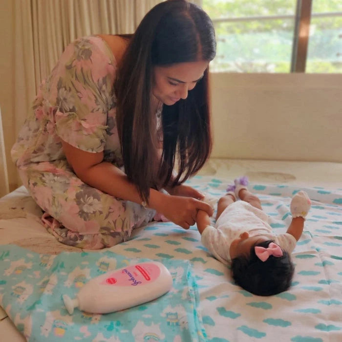 Sameera Reddy’s little one enjoys the gentle comfort of our organic muslin swaddle set. Perfect for newborns and toddlers, it wraps babies in soft, breathable cotton.