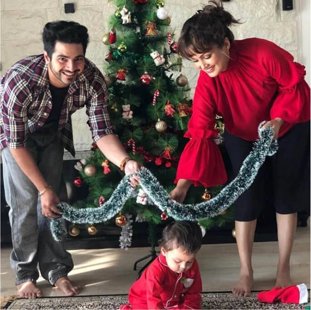 Karan Mehra & Nisha Rawal with Baby Kavish (Merry Christmas Pajama Set For Kids)