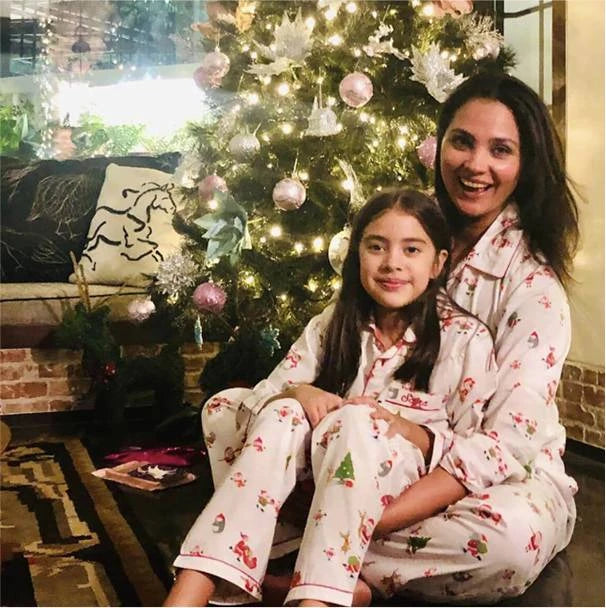 Lara Dutta Twinning with Daughter Saira (Women Winter Joys Pajama Set)